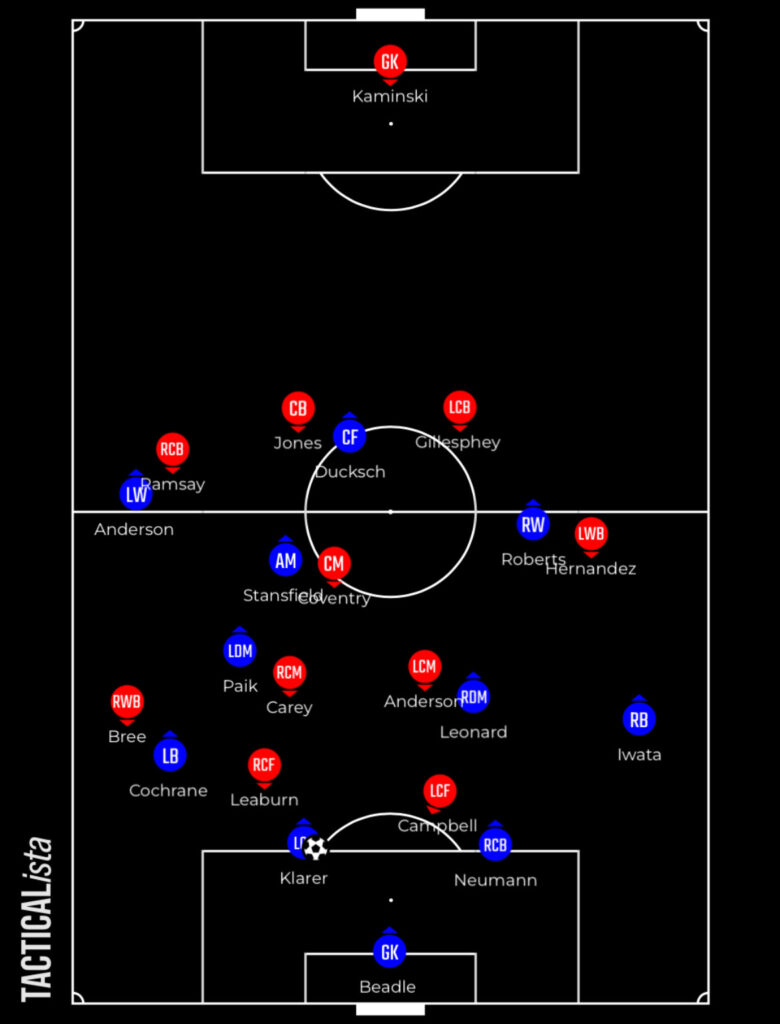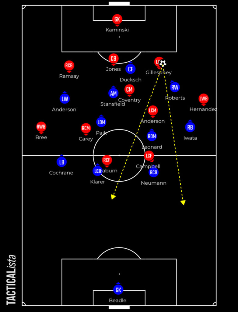 Out wide they’re not particularly proficient either with James Bree and likely Hernandez their wing-backs when they arrive at St. Andrew’s. They’re both more creative forces than defensive minded operators and can be caught out in tracking their men.