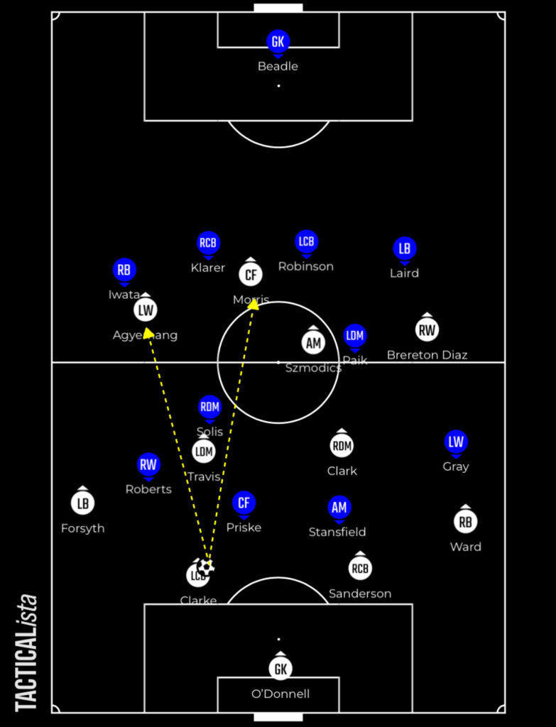 If they aren’t looking to hold the ball up directly they also have the energy of Brereton Diaz, Szmodics and Clark, all of whom can burst beyond defenders and attack the channels.