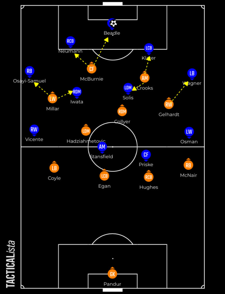 A lot of their threat earlier in the season came down the left flank with Giles, but in his absence there’s been more emphasis on forwards to create chances themselves.